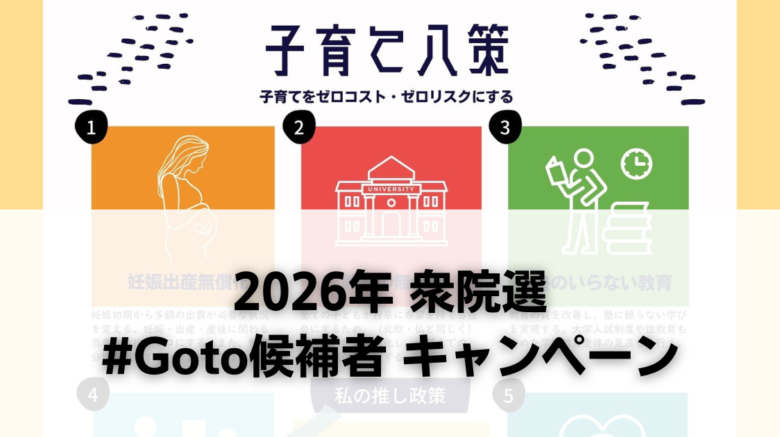 2026年 衆院選 #Goto候補者 実施中!2026年1月24日 担当ALLeave a comment 選挙は私たちの声を直接聞いてもらえるチャンスです。2026年の衆院選でも「#Goto候補者」を実施しますので、ぜひ、ご参加ください!